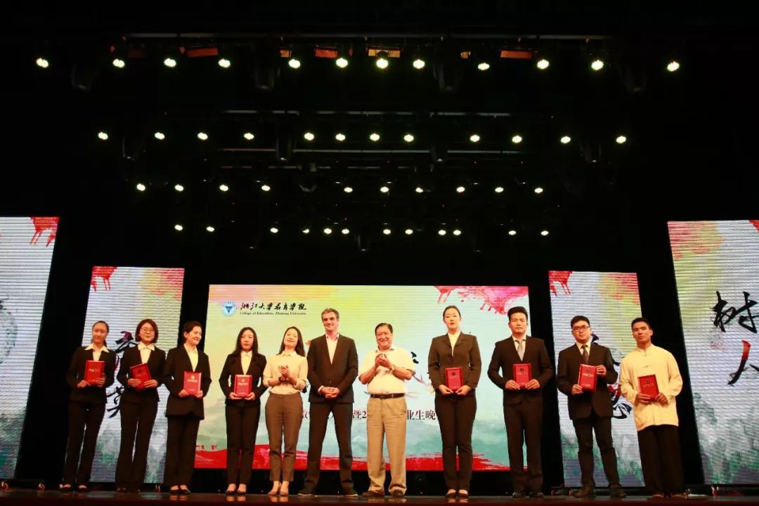 首先,阚阅副院长和包松副书记为第四届梁广榕奖学金获得者颁奖。梁广榕奖学金是香港爱心人士梁广榕先生,为激励后辈学子努力学习、建设祖国而设,至今已颁发四届。之后,“朝生助学金”设立人――浙江大学校友、杭州欣盛房地产公司董事长、叶朝生先生,“益游奖学金”设立单位――杭州益游旅游科技有限公司CEO Yann Coelenbier先生、“上海新纪元研究生科学研究优秀成果奖励基金”设立单位――上海新纪元教育集团代表林影一起为获得浙江省优秀毕业生的同学们颁奖,并合影留念。优秀毕业生们的勤奋与卓越,是教院精神的最佳诠释。紧接着,滨文小学带来的表演――武魂・少年梦,展现了少年人的健康气魄,他们怀着对武术的热爱,向我们展示少年梦在,紫气东来。最后由新葡京博彩官网(中国)官方网站 啦啦操队的小姐姐们为我们带来带劲的热舞――舞悦・致青春,一起舞动青春,舞出人生。