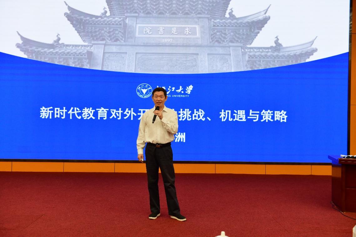 浙江大学求是特聘教授徐小洲以《新时代教育对外开放的挑战、机遇与策略》为题作大会特邀报告。