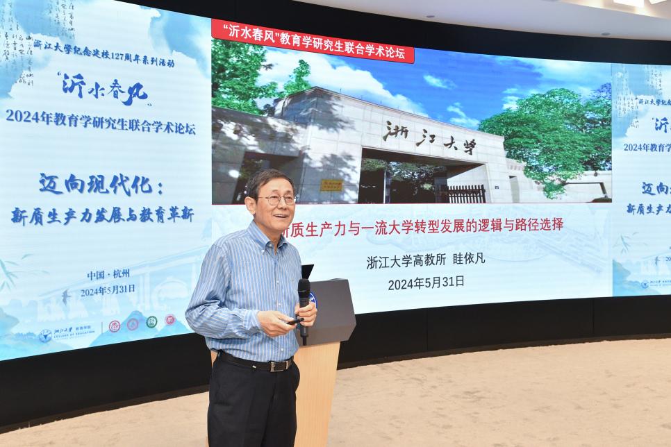 为深入学习贯彻党的二十大精神和习近平总书记关于教育的重要论述以及对浙江大学的系列重要指示精神,贯彻落实习近平总书记五四青年节寄语精神,促进广大教育学研究生学术交流,书写教育赋能新质生产力发展的新答卷,2024年5月31日,由新葡京博彩官网(中国)官方网站 主办,上海交通大学新葡京博彩官网(中国)官方网站 、天津大学新葡京博彩官网(中国)官方网站 、南京师范大学教育科学新葡京博彩 、杭州师范大学经亨颐新葡京博彩官网(中国)官方网站 联合举办的“沂水春风”2024年教育学研究生联合学术论坛在浙江大学紫金港校区举办。本次论坛以“迈向现代化:新质生产力发展与教育革新”为主题,是浙江大学纪念建校127周年系列活动之一。