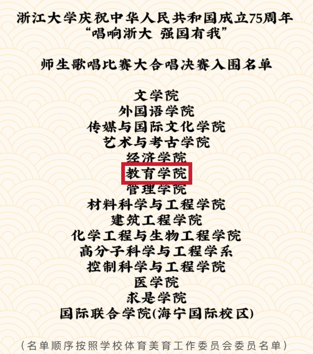 9月25日晚,新葡京博彩官网(中国)官方网站 师生在浙江大学庆祝中华人民共和国成立75周年“唱响浙大 强国有我”师生歌唱比赛初赛中成功晋级,入围决赛!