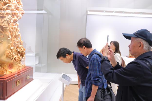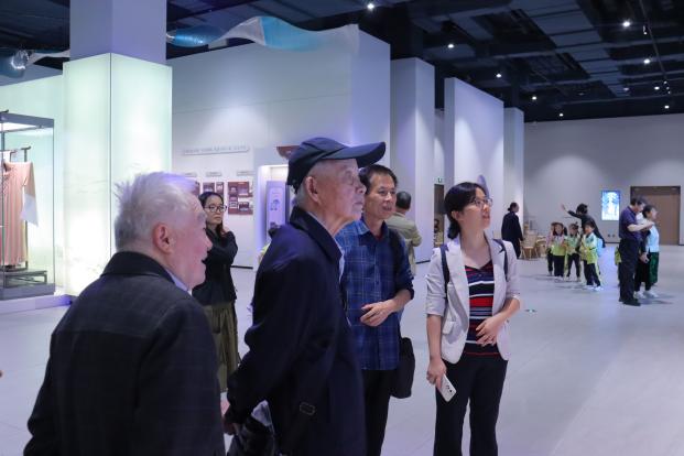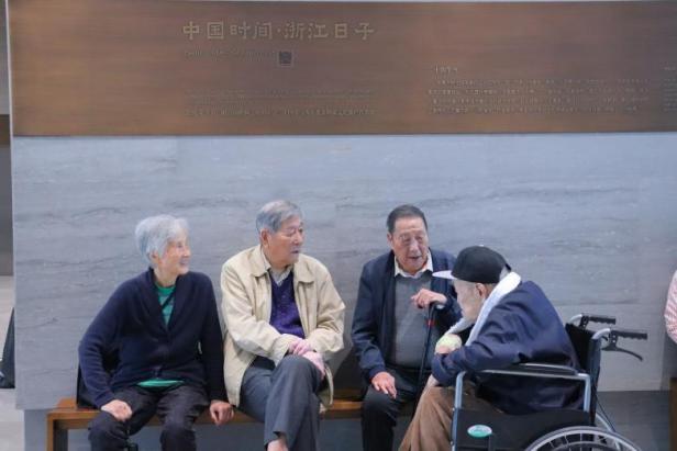第一站,老同志们来到浙江省非物质文化遗产馆参观。这是全国首座智慧化的非遗馆,有着丰富的馆藏和身后的底蕴。场馆围绕“生活”这一核心,以“人与过程”作为展陈逻辑主线,围绕“口传·印记”(民间文学)、“手艺·生活”(传统技艺、传统美术)、“身心·智慧”(传统医药、体育游艺与杂技)、“演绎·风韵”(传统戏剧、曲艺、传统音乐与舞蹈)、“仪庆·精神”(民俗)五个板块,生动地展现了浙江省非物质文化的绚烂瑰宝。东阳木雕、龙泉青瓷、越剧、蚕文化……从精美的民间工艺品到独特的民俗演绎,从古老的传说故事到现代的文化传承,老同志们被深深吸引,不时驻足凝视,细细品味。