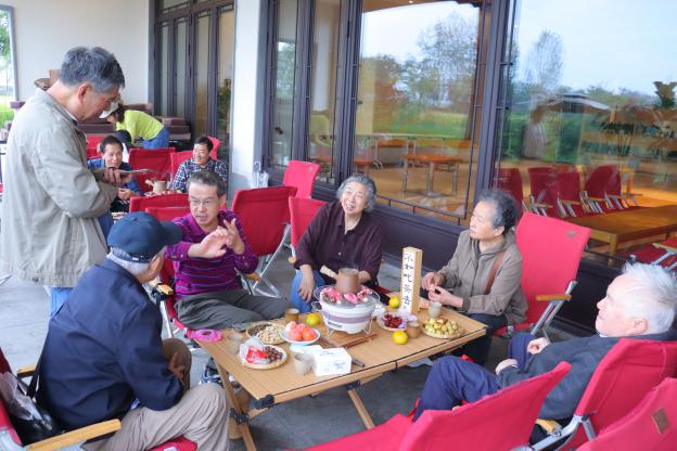 下午,老同志们来到铜鉴湖,听雨品茶,漫步赏花。