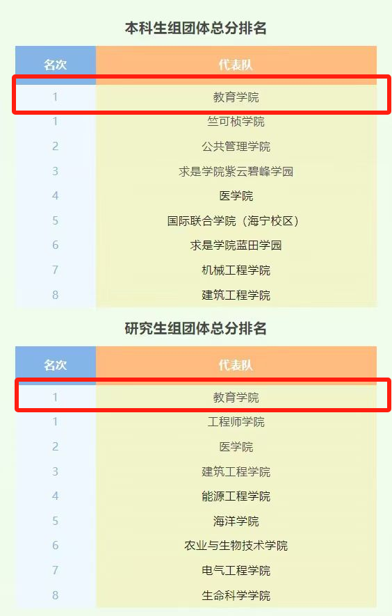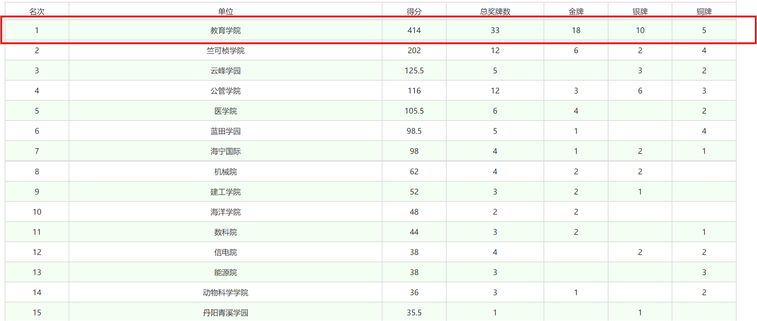 2024年10月18日-19日,浙江大学2024年运动会顺利举行。在为期两天的校运会里,教院健儿火力全开共计斩获金牌28块,银牌16块,铜牌8块包揽本科生组与研究生组双组别团体总分冠军!续写教院辉煌战绩!