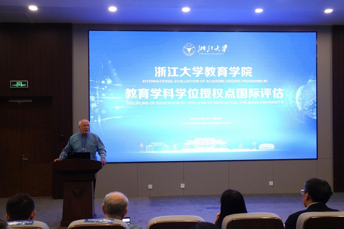 闭幕式上,评估专家组组长、悉尼大学Anthony Welch教授代表专家组反馈评估意见。专家组对本次评估工作的汇报、师生表现及组织工作给予了高度赞扬,对浙江大学教育学科近六年来取得的成绩给予了充分肯定和高度评价。专家组一致认为浙江大学教育学科学位授权点达到国际先进水平,同意教育学科学位授权点国际评估结果合格。专家组表示,浙江大学教育学科学位授权点在全球教育领域展现出强大的发展潜力,未来可期。同时,专家组也从课程建设、国际合作、战略可持续发展等方面提出了一系列具有建设性的改进意见和建议。