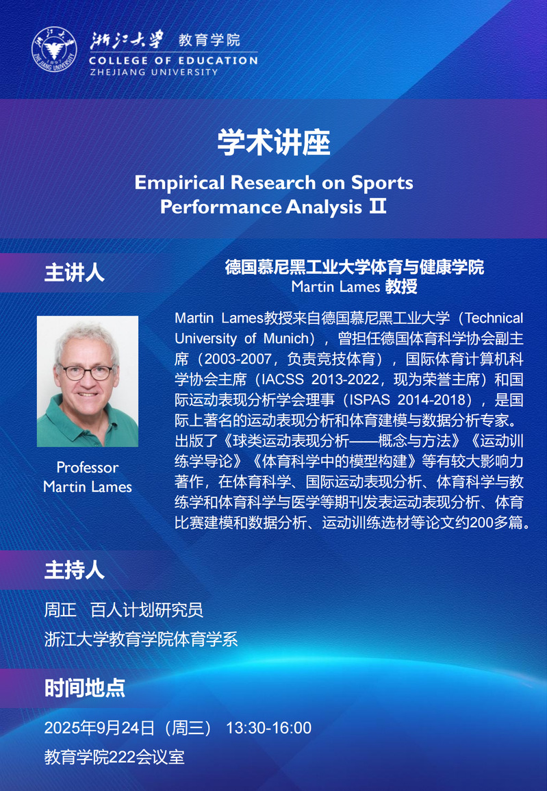 学术预告丨Professor Martin Lames:Empirical Research on SportsPerformance Analysis II